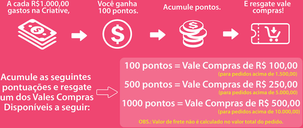 - O valor do frete não será válido/somado no valor total de sua compra, para acumulo de pontos.