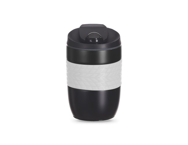 Copo antiqueda em aço inox parede dupla de 260ml, conserva temperatura quente ou fria, pegador em silicone e bico com tampa. Na parte inferior da caneca existe uma ventosa que por sucção previne possiveis quedas causadas por batidas, choques e colisões.