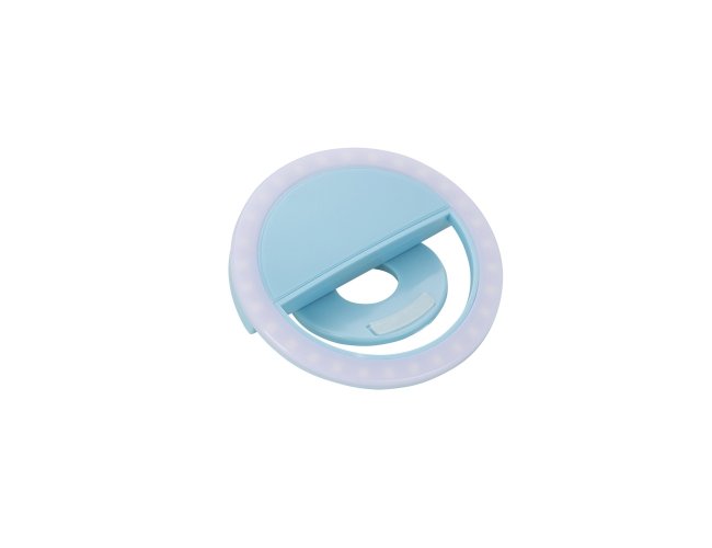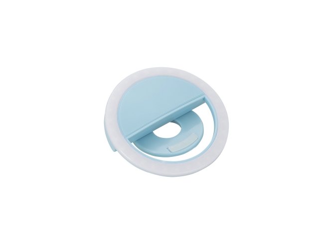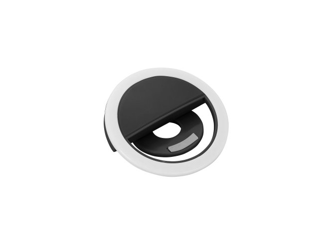 Anel de iluminação para celular, utilizado para fotos em formato selfie. “Ring light” plástico no formato “presilha” para encaixe, possui três estágios de iluminação acionados pelo botão superior. Acompanha cabo USB para carregamento.