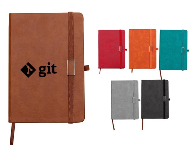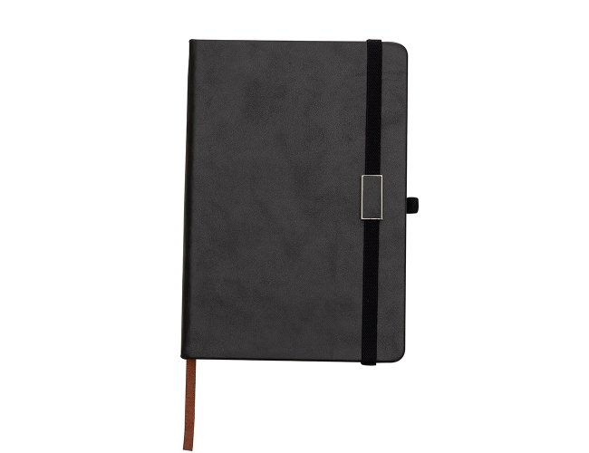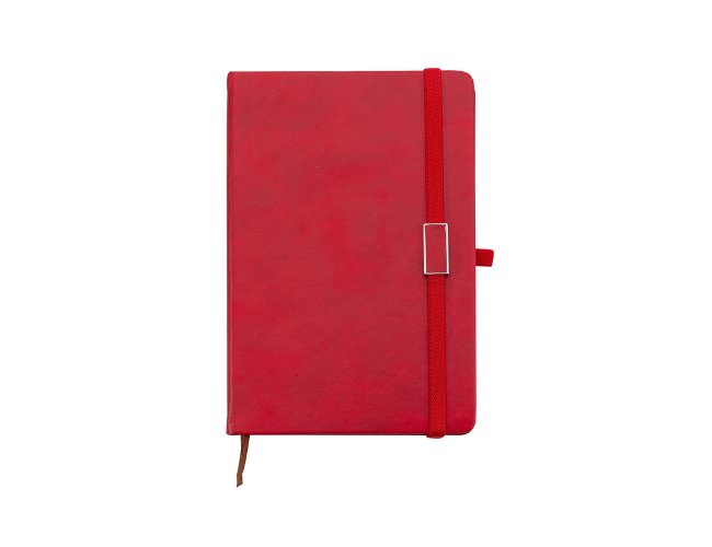 Caderneta emborrachada com suporte para caneta. Contém aproximadamente 96 folhas amarelas sem pauta, suporte de nylon para caneta (não acompanha), marcador de página em cetim e elástico para lacre com plaquinha de centro emborrachado.