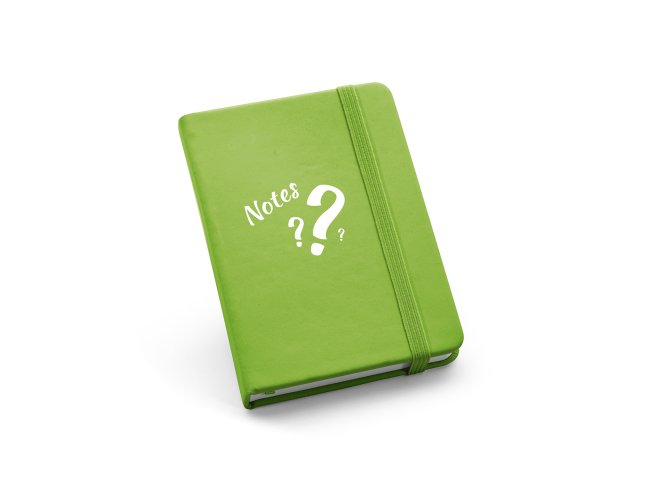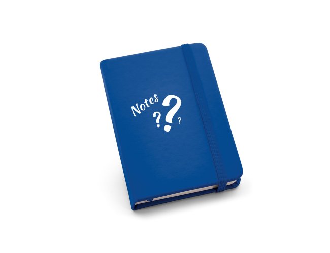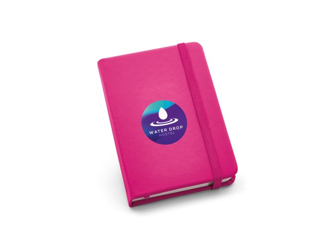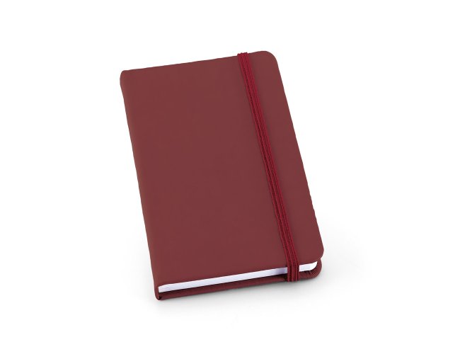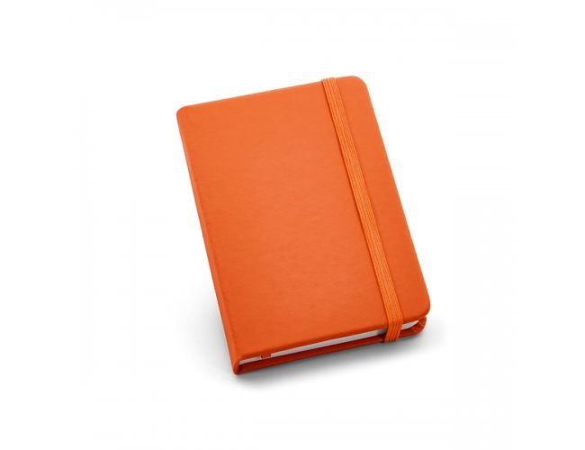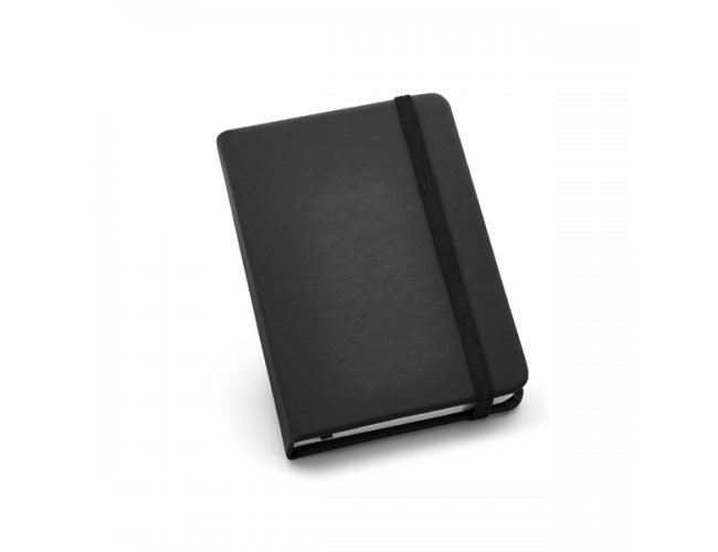 Caderno de bolso com 80 folhas não pautadas, capa dura em c. sintético, fita separadora e elástico. 90 x 140 mm