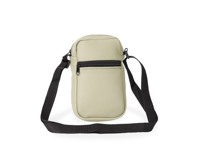 Bolsa de ombro confeccionada em couro sintético com fechamento em zíper e alça ajustável. Possui dois compartimentos: um com bolso aberto em tecido de malha e outro localizado na parte frontal.