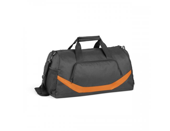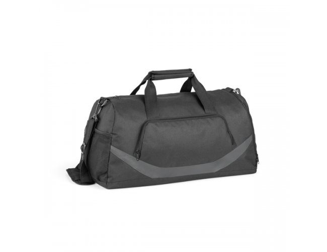 Bolsa esportiva em 300D e 1680D com fundo em placa semi-rígida. Contém um bolso frontal com zíper, um bolso lateral em tela mesh e um bolso lateral para sapatos. Alça de ombro ajustável, com reforço almofadado. Capacidade até 35 L. 570 x 330 x 300 mm