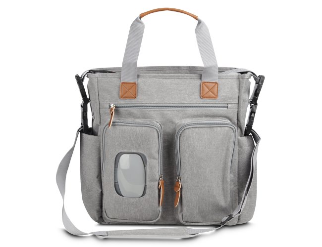 Bolsa multifuncional em poliéster 300D com detalhes em PU e interior em 210D. Possui 2 compartimentos laterais, 3 bolsos frontais com zíper, 1 na parte oposta com fechamento em velcro, incluindo um específico para lenços umedecidos. Conta com alças de ombro e de mão com acabamento em PU, além de interior espaçoso com divisórias e fechamento em zíper. Prática e organizada para o dia a dia.