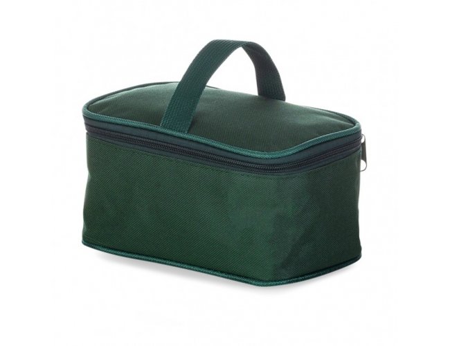 Bolsa térmica 2,6 litros em nylon com alça para mão, parte interna com revestimento térmico e acompanha plaquinha para personalização avulsa.