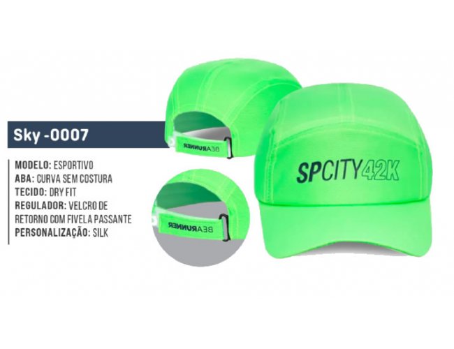 Boné Esportivo Dry Fit, aba curva sem costura.