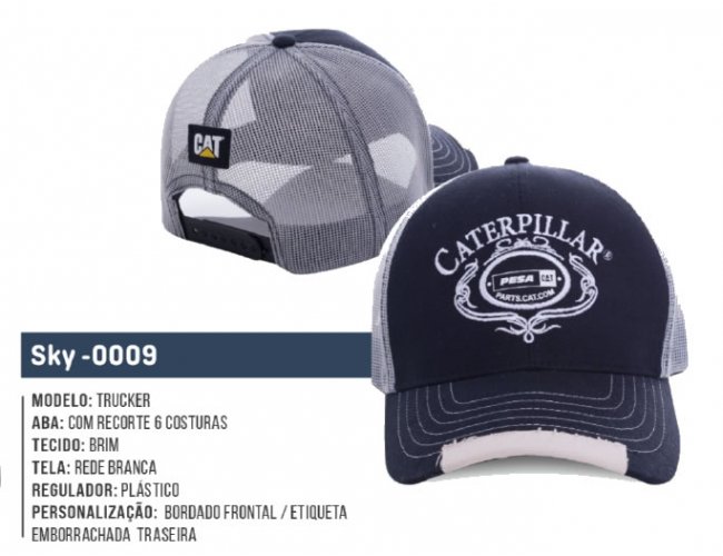 Boné Trucker Brim, aba com recorte 6 costuras.