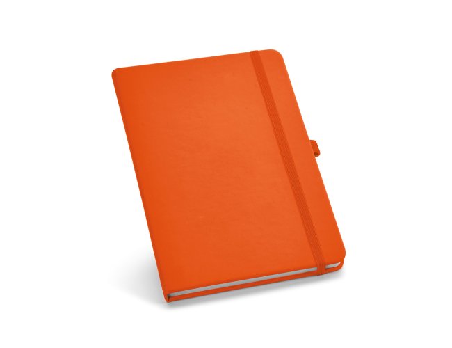 Caderno B6 de capa dura em c. sintético com 160 páginas lisas. 120 x 170 mm