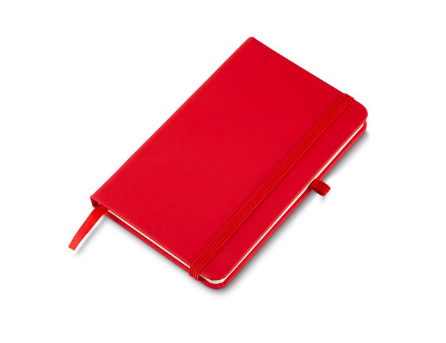 Caderno de anotações com elástico, suporte para caneta, capa dura em material sintético, miolo 80 folhas pautadas cor bege.