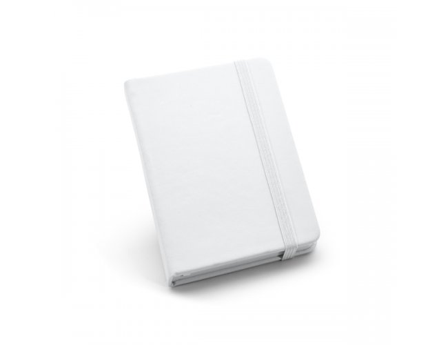 Caderno de bolso com 80 folhas não pautadas, capa dura em c. sintético, fita separadora e elástico. 90 x 140 mm