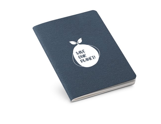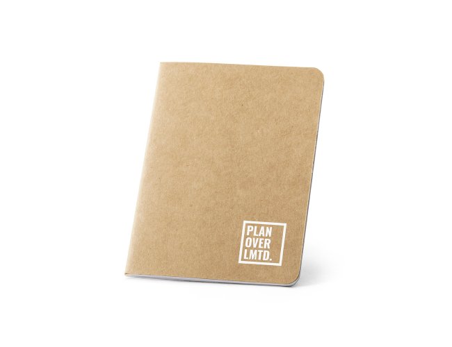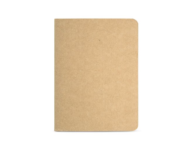 Caderno B7 e capa flexível em cartão kraft 100% reciclado, com 60 páginas lisas em papel 100% reciclado. 93 x 125 mm