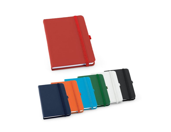 Caderno A6 de capa dura em c. sintético, com 160 páginas lisas. 90 x 140 mm
