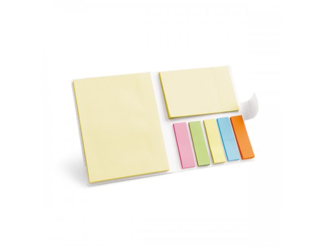 7 blocos adesivados com 25 folhas cada e capa em cartão. Este produto é feito de material proveniente de gestão florestal sustentável. 80 x 105 x 9 mm