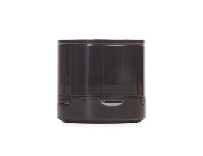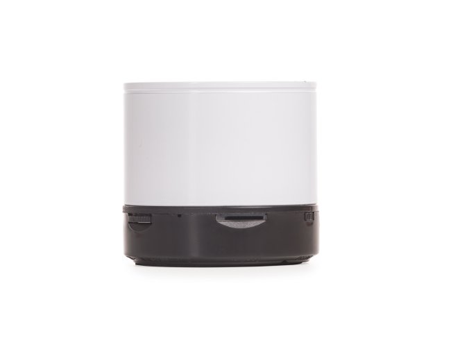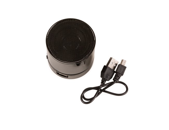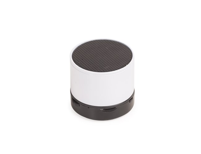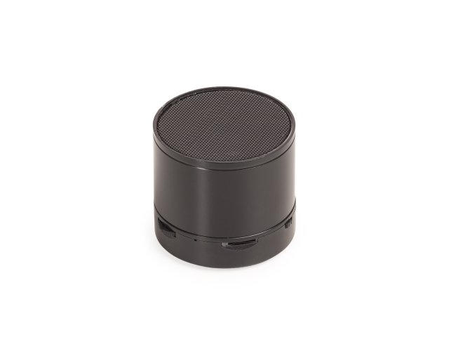 Caixa de som multimídia com Bluetooth e rádio FM. Material metálico, possui a parte inferior com detalhes em relevo de algumas funções: botão Off/On; entrada para cartão MicroSD. Parte inferior com detalhe emborrachado anti-deslizante, acompanha cabo USB/Aux para recarregar.