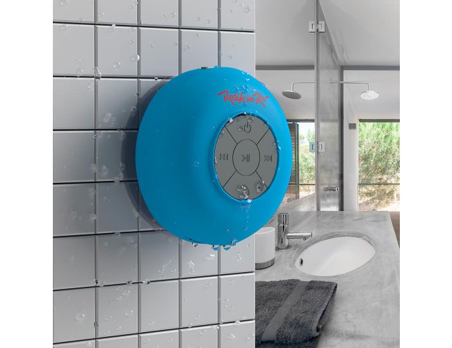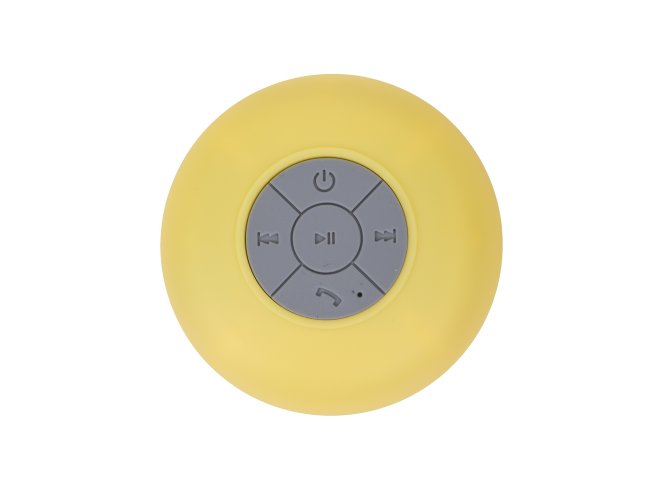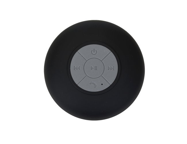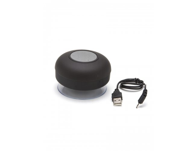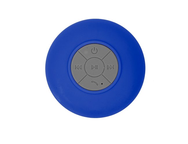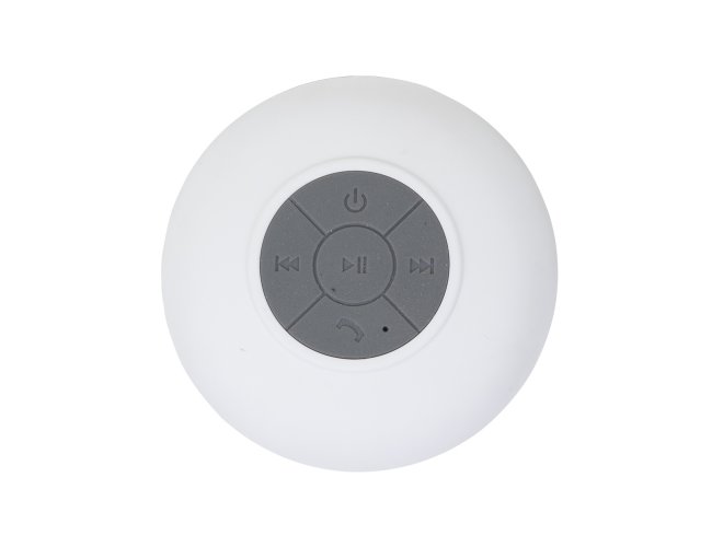 Caixa de Som Multimídia à prova D’Água emborrachada com ventosa(pode ser removida). Possui play/pause no centro e botão com desenho de telefone deve ser apertado para atender ligações. Compátivel com Iphone, Ipad, Ipod, aparelhos de celular e tablets. Acompanha cabo.