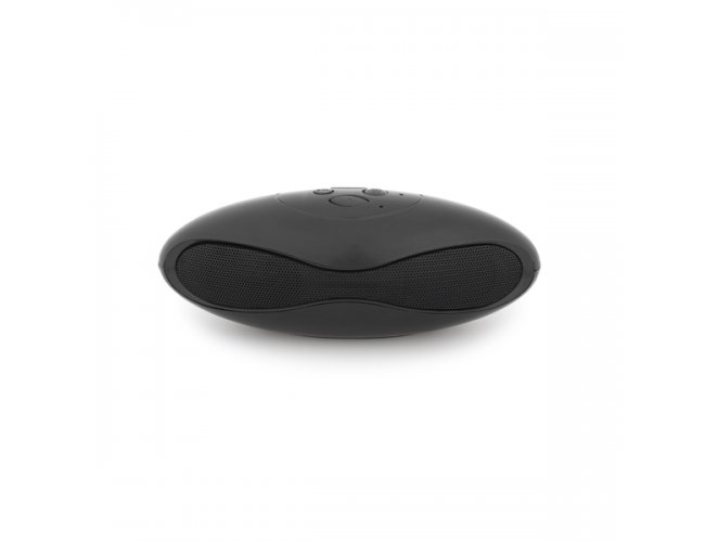 Caixa de som portátil com microfone, em ABS e acabamento emborrachado. transmissão sem fios BT v3.0, potência de 3W/4Ω e autonomia aproximada de 3 h. Função para atender chamadas, controle de volume e conexão à playlist do dispositivo móvel. Incluso cabo USB para carregar. Fornecida em caixa presente. 150 x 56 x 58 mm | Caixa: 155 x 60 x 60 mm