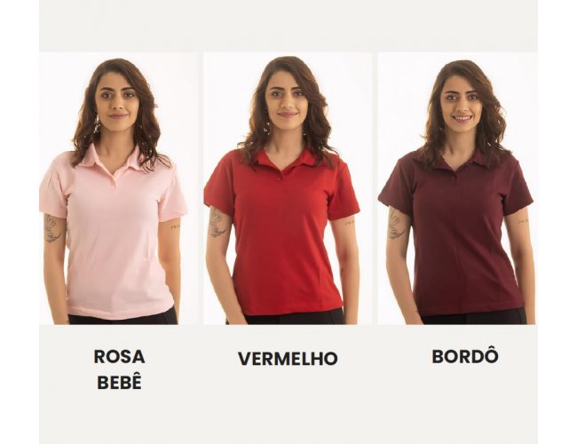 Camisa Polo Feminina Piquet PA. Composição: 50% Algodão 50% Poliéster