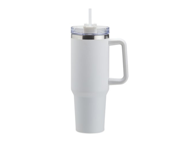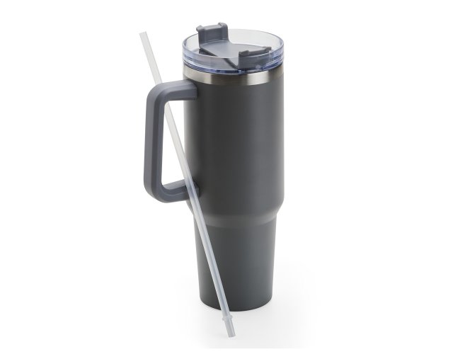 Caneca térmica com capacidade de 1,2 litros feita em inox 304 com parede dupla, contém tampa acrílica rosqueável com acesso para canudo e pegador plástico. Acompanha canudo plástico.