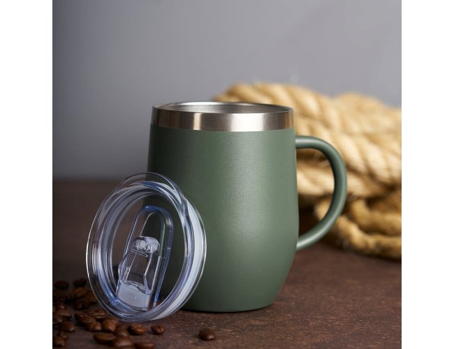 Caneca térmica de inox com capacidade de 350ml, material livre de BPA. Contém tampa acrílica com bocal e trava de segurança.