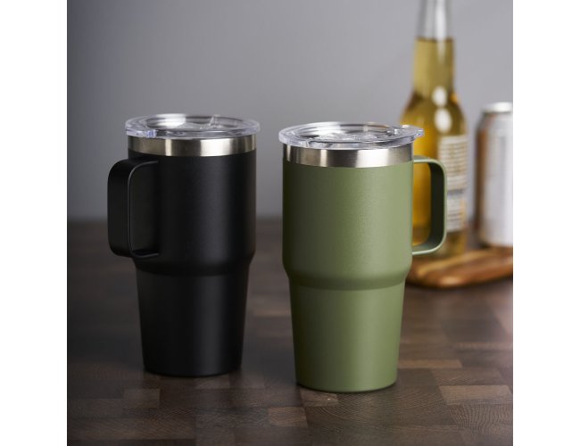 Caneca térmica de Inox com capacidade para 700ml. Acompanha uma tampa de plástico transparente .
