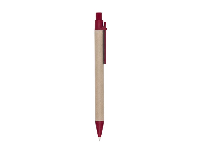 Caneta ecológica de papelão com detalhes coloridos. Clip e ponteira plástica, possui relevo na ponteira. Aciona por clique.