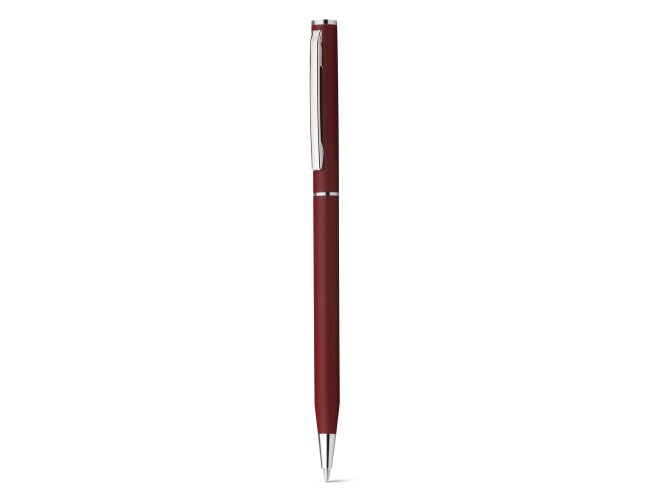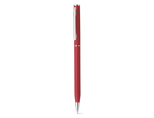Esferográfica em alumínio com mecanismo twist e clipe de metal. Escrita em azul até 1,5 km. ø7 x 129 mm