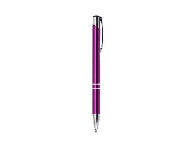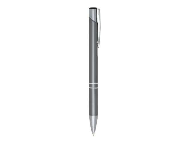 Caneta Metal ER143B inteira colorida com detalhes prata. Clip metal com a ponta do acionador preto, parte inferior com dois anéis prata. Aciona por clique.