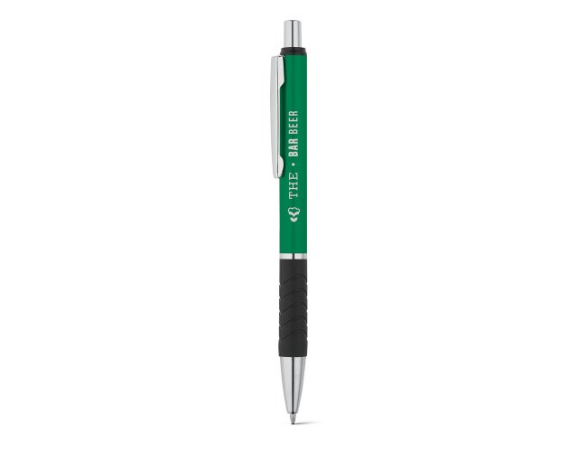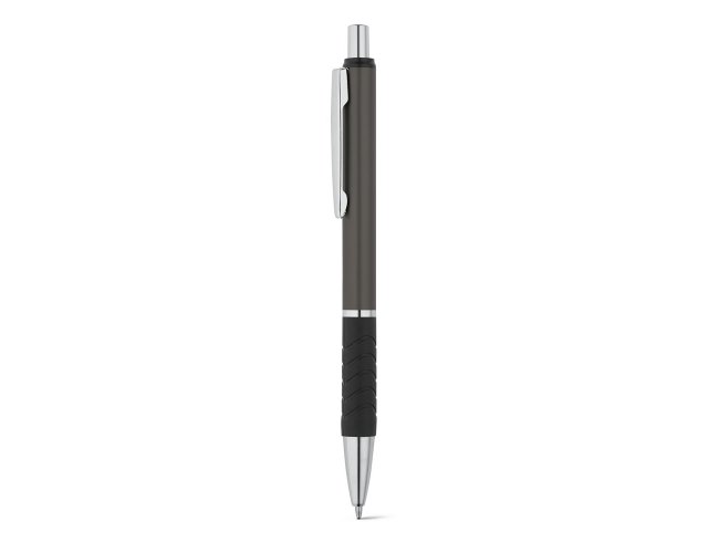 Esferográfica em alumínio com clipe de metal e grip. Até 1,5 km de escrita. ø10 x 136 mm