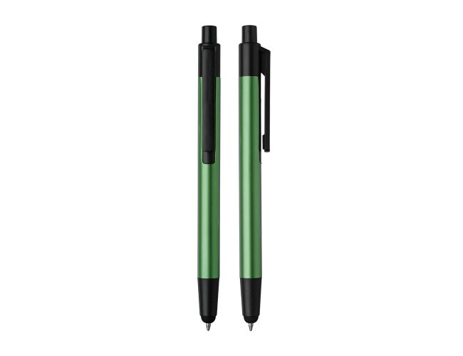 Caneta esferográfica em metal com ponta touch escrita em azul