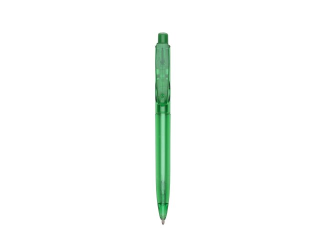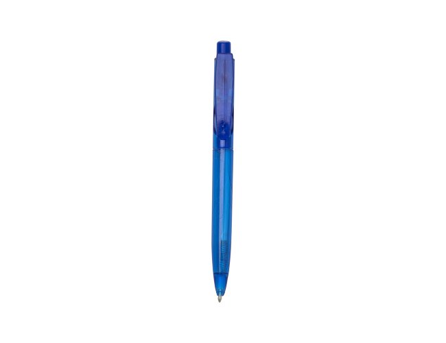 Caneta plástica translúcida inteira colorida. Aciona por clique e para destravar basta apertar a parte inferior do clip.