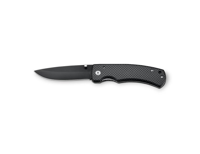 Canivete em aço inox e metal com fecho de segurança e clipe.