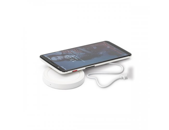 Carregador wireless fast. ABS e silicone. Com entrada 5V/2A e 9V/1.67A e potência de carregamento 5W, 7.5W e 10W. Incluso cabo USB/micro USB para carregar. Compatível com smartphones com tecnologia de carregamento sem fios. Fornecido em caixa presente. ø69 x 10 mm