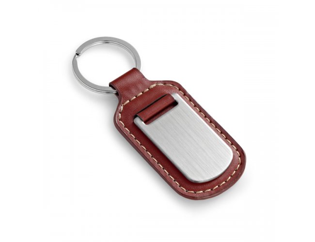 Chaveiro de Couro e Metal 93172 Personalizado. C. sintético e metal. Incluso caixa.