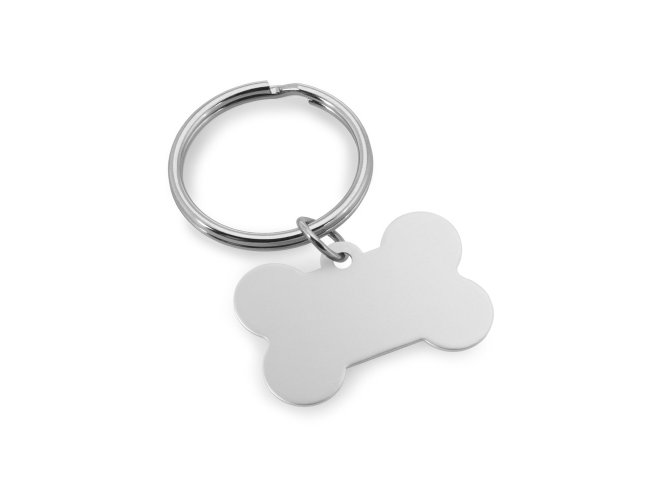 Chaveiro em formato de osso em alumínio. 38 x 25 x 1 mm