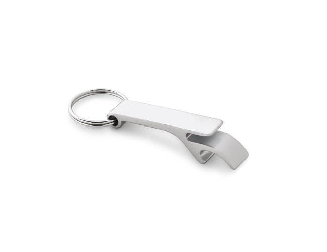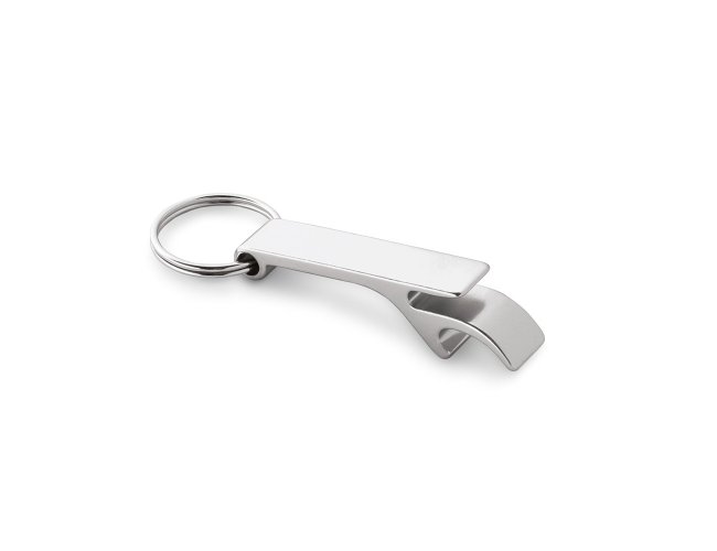 Chaveiro em alumínio com abridor de garrafas. 11 x 60 x 15 mm
