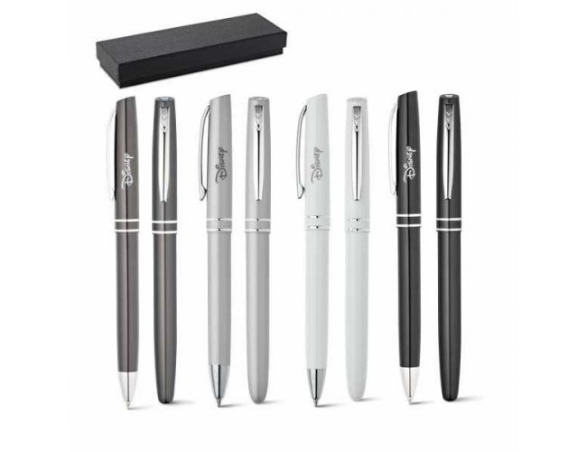 Conjunto de roller e esferográfica HALEY Personalizada 91899 com a sua logomarca. Alumínio. Esferográfica: 1,5km de escrita. Em estojo almofadado.