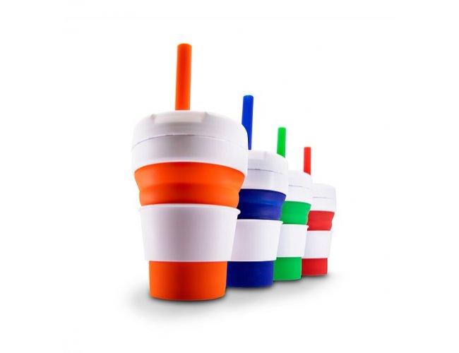 Copo expansível Material: Silicone de grau alimentar. Capacidade 355ml. Inclui Canudo no mesmo material. 90(Diam) x 125(Altura) mm (expandido).