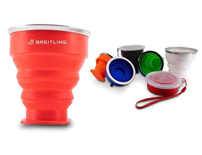 Copo expansível Material: Silicone de grau alimentar. Capacidade 240ml. Bocal de Inox e Tampa em PVC flexível. Possui cordão para transporte. 80(Diam) x 90(Altura) mm (expandido).