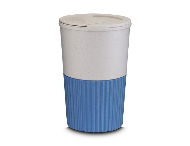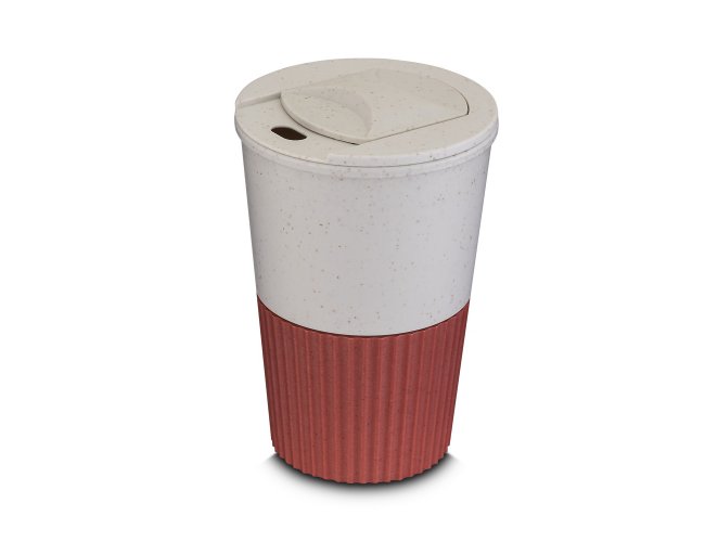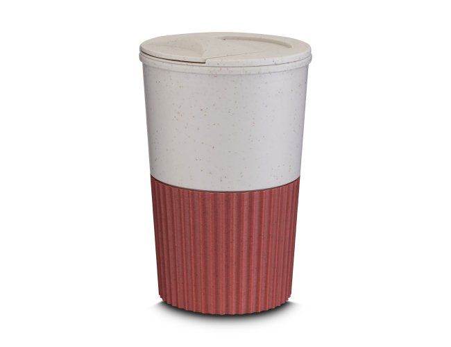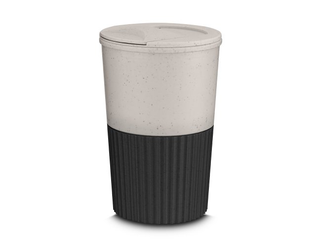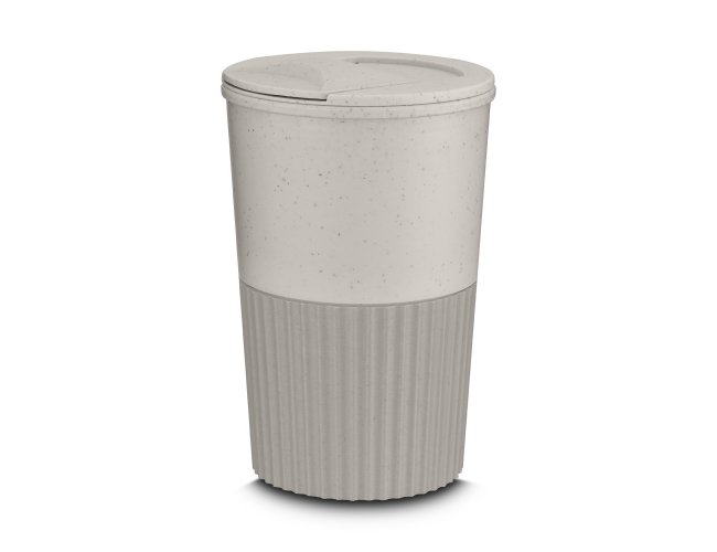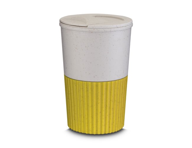 Copo plástico produzido com fibra de trigo e plástico, com capacidade de 400ml e tampa rosqueável.