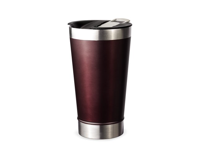 Copo térmico de inox com acabamento liso e capacidade 500ml, material livre de BPA. Contém tampa com abridor.
