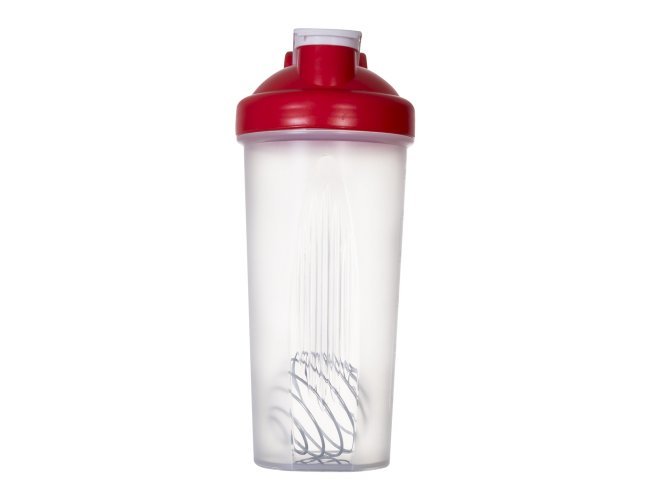 Coqueteleira 600ml plástica para Shake. Possui medidas em ml e oz, detalhes em relevo nas laterais e mola para misturar. Tampa de rosca e trava na própria tampa, basta levantar para beber.