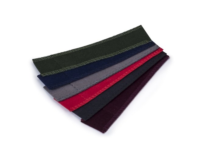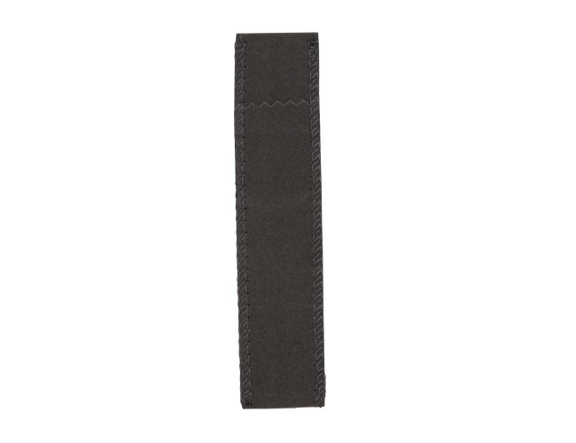Veludo costurado para uma caneta. Tamanho total aproximado (CxD): 15 cm x 3,1 cm. Peso aproximado (g): 1