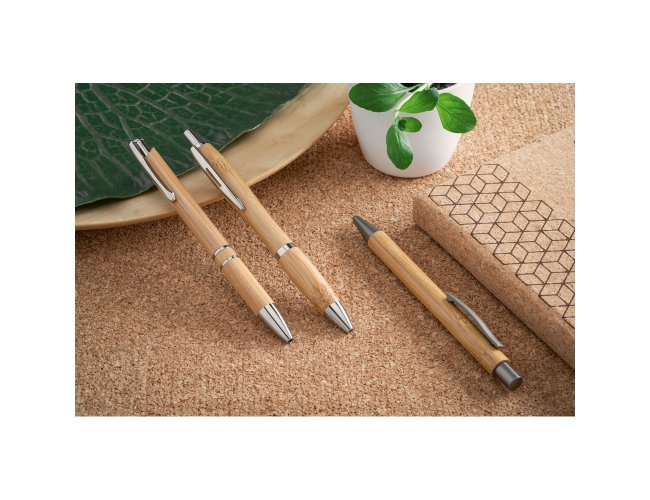 Esferográfica em bambu com clipe de metal. Até 1,5 km de escrita. ø11x137 mm