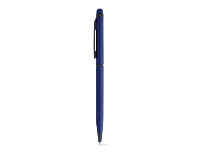 Esferográfica em alumínio com mecanismo twist, clipe e ponteira touch. ø8 x 137 mm