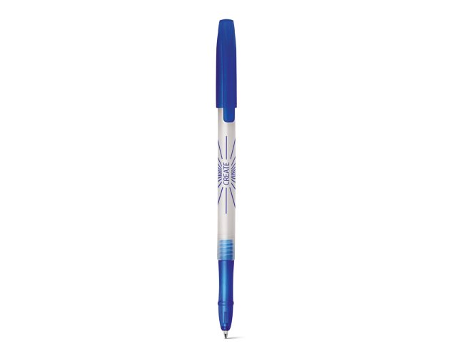 Esferográfica em PP com acabamento frost. Até 1,5 km de escrita. ø10 x 142 mm.