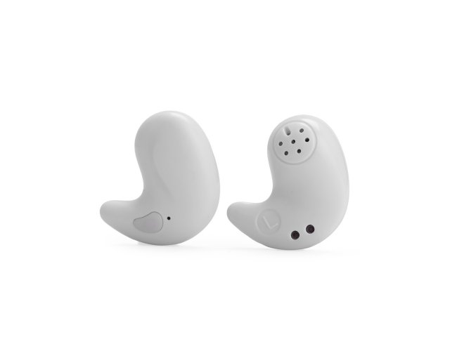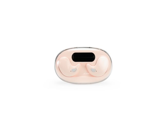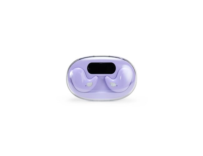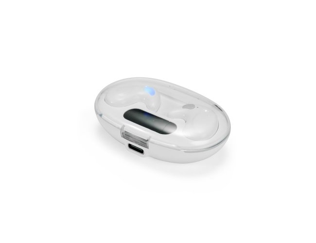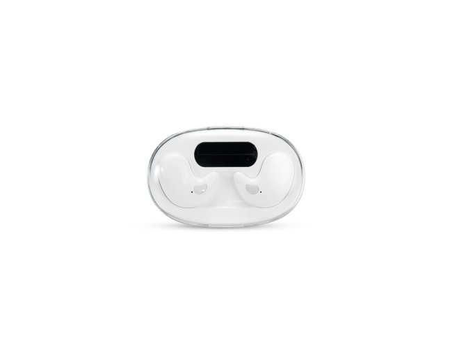 Fones de ouvido intra-auriculares sem fio, com estrutura leve e compacta em plástico e conexão via Bluetooth 5.3, garantindo estabilidade durante o uso. Possui estojo de carregamento com display de LED para visualizar o nível de carga. Acompanha cabo USB-C.