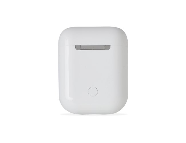 Fone de ouvido bluetooth com comandos touch, microfone e case carregador de fechamento magnético. Fones e case com acabamento brilhante, acompanha USB Lightning.
