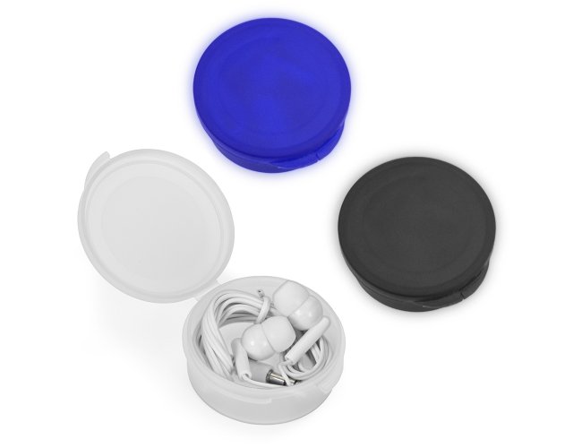 Descrição: Fone de ouvido intra-auricular, caixinha redonda de material plástico fosco inteiro colorido. Compatível com todos os modelos de celular.