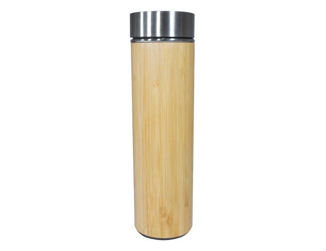 Garrafa de bambu e inox 500ml com parede dupla e infusor.