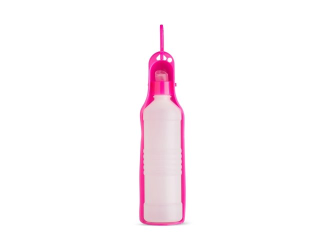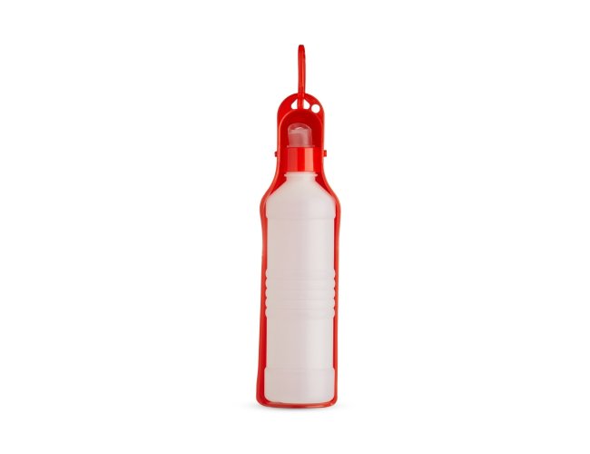 Garrafa bebedouro para pet feita em plástico com capacidade de 420ml. Tampa rosqueável com bico antivazamento, basta pressionar a garrafa para a vazão da água através da tigela. Acompanha gancho de transporte.
